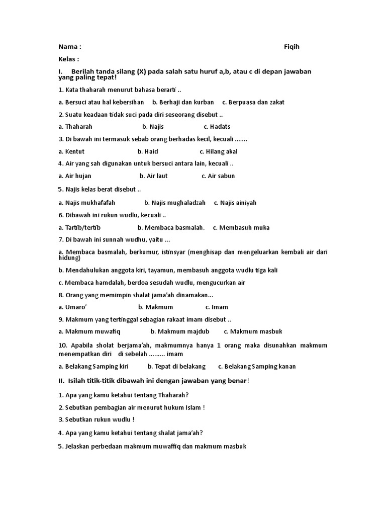 Contoh Soal Bab Thaharah Soal Kelasmu from lh5.googleusercontent.com Ialah menyucikan diri dari kotoran kesyirikan dan kemaksiatan dari diri. 3 pengertian thaharah menurut bahasa berarti kebersihan atau kesucian. Thaharah menurut bahasa artinya bersih dari kotoran. Hadas secara maknawi berlaku bagi manusia. Thaharah, menurut bahasa, berarti 'annzhaafah wannazaahah minal ahahdaats' artinya: Menurut istilah, thaharah berarti membersihkan diri dari segala kotoran, baik itu kotoran jasmani maupun kotoran rohani. Pengertian thaharah, hikmah thaharah, tata cara thaharah, pengertian thaharah menurut bahasa dan istilah. Dengan kata lain, thaharah dengan ibadah ibarat dua sisi mata uang, dimana antara satu sisi dengan sisi lainnya tidak dapat dipisahkan.